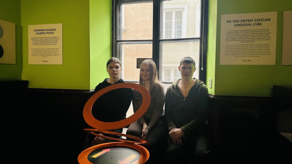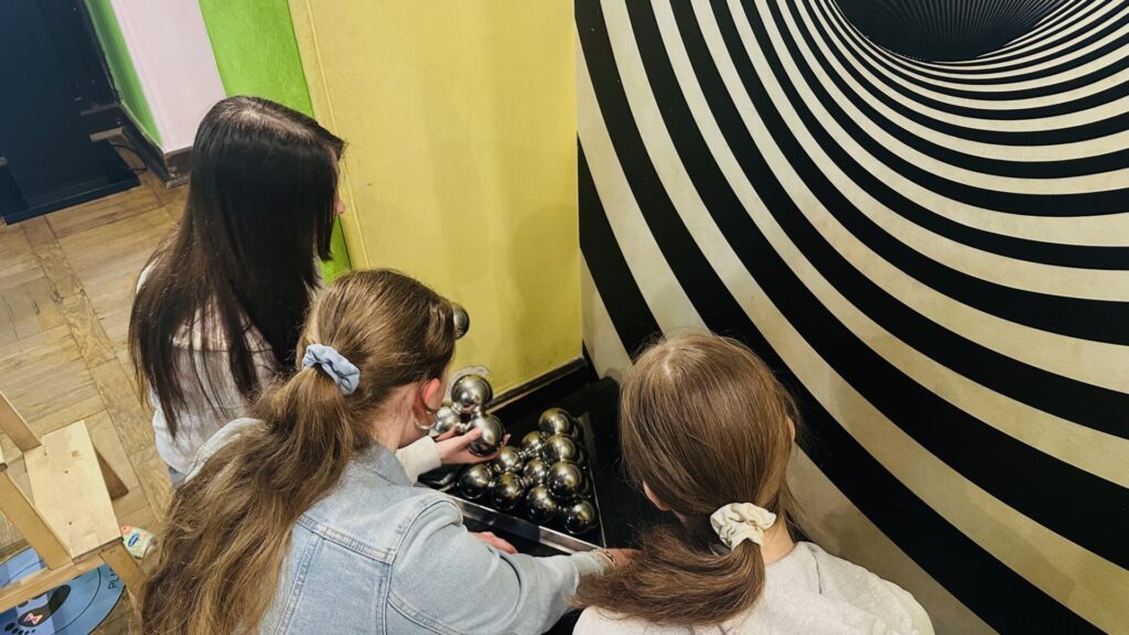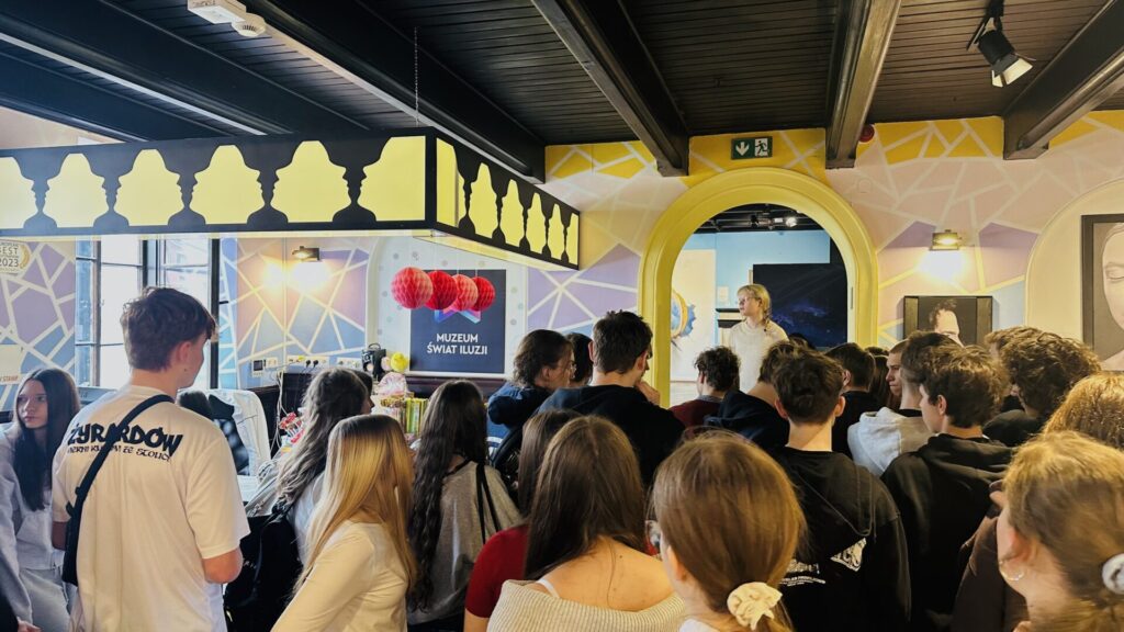 Kolejnym punktem wycieczki był Świat Iluzji, gdzie mogliśmy doświadczyć niezwykłych zjawisk optycznych i interaktywnych atrakcji. Sprawdzaliśmy, jak łatwo można oszukać nasz wzrok, oraz robiliśmy ciekawe zdjęcia. To miejsce dostarczyło nam wielu emocji i dobrej zabawy.”