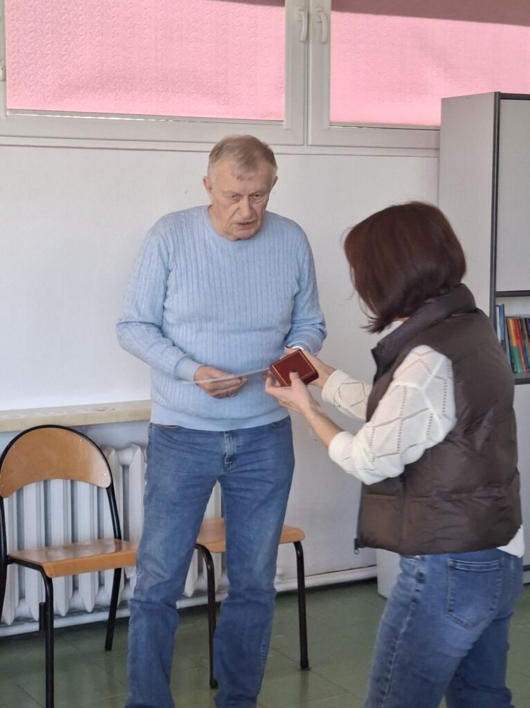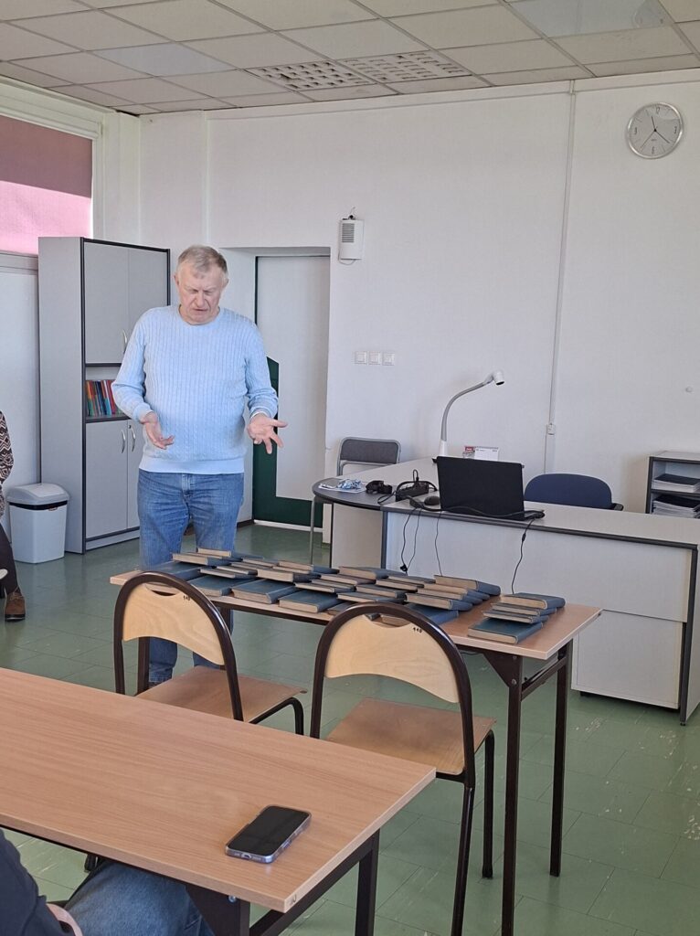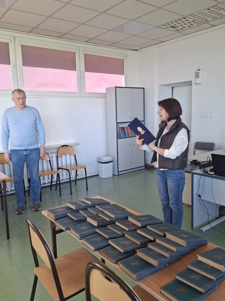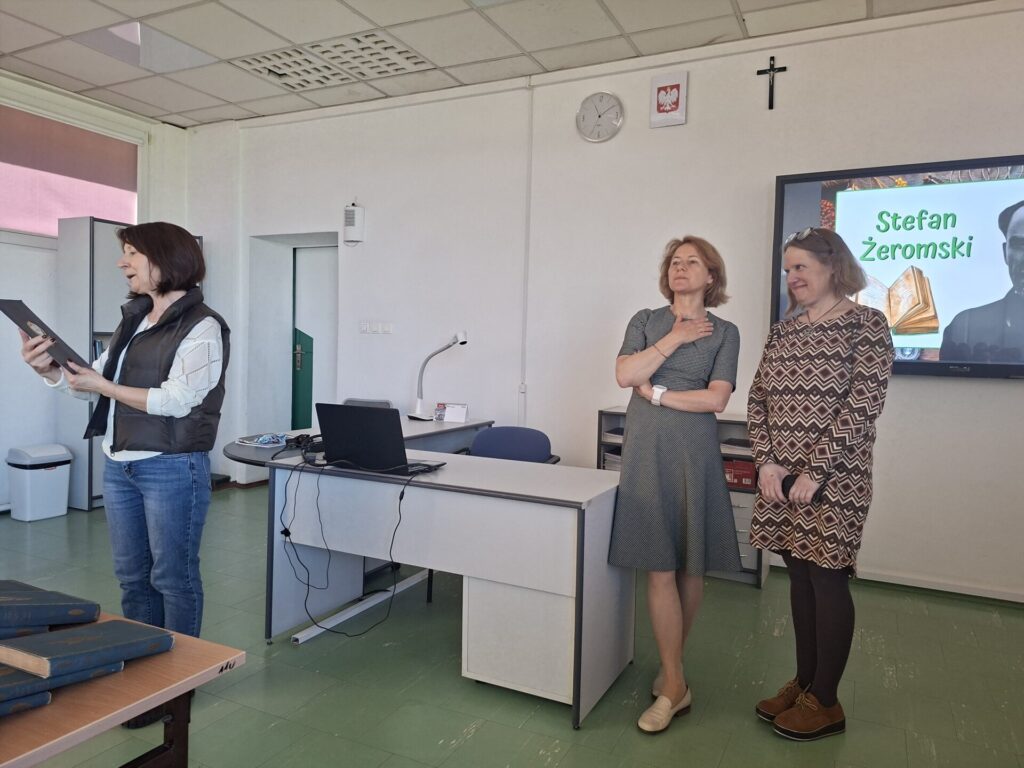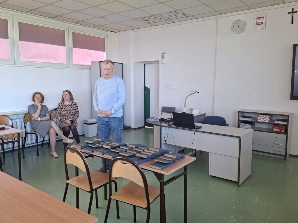 We wtorek 28 kwietnia w naszym liceum odbyło sie spotkanie z Panem Piotrem Dudkiewiczem, wnukiem Pawła Hulki-Laskowskiego. Pan Piotr podarował szkole stuletnie książki Stefana Żeromskiego ze swoich rodzinnych zbiorów. Podczas tej uroczystości Pani Dyrektor Agnieszka Przyjankowska wręczyła naszemu darczyńcy odznakę „Przyjaciela szkoły”. Uczniowie wysłuchali ciekawej opowieści Pana Dudkiewicza o historii zbiorów biblioteki założonej przez jego mamę, córkę Pawła Hulki-Laskowskiego.